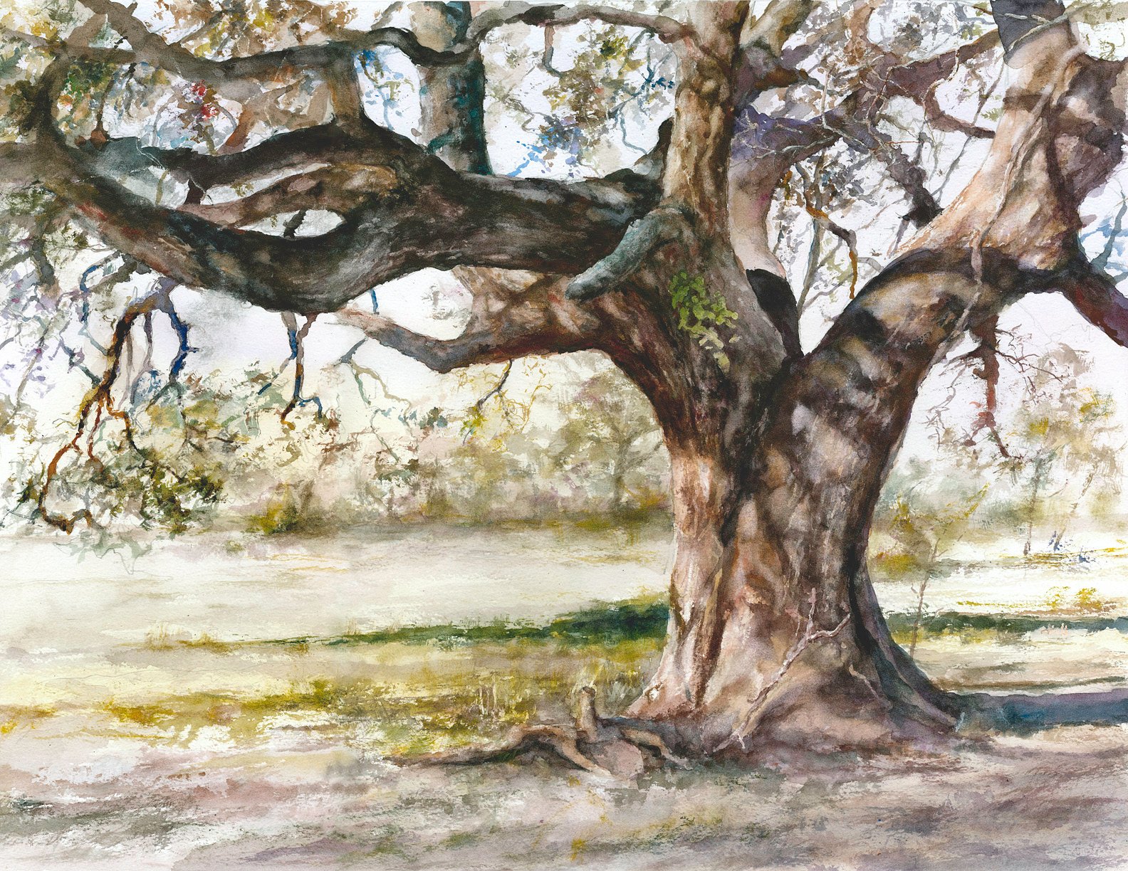 Preston Steed's watercolor originals are primarily painted on Arches 140-lb. hot-pressed watercolor paper. The smooth surface allows him to create the textures he desires with paint, rather than allowing a rougher paper to create texture for him. Because he seeks to paint "a single moment in time," he works primarily from photographs he has taken himself. In this way he is able to best represent the light, shadow, and air quality that permeated his subject matter in the moment that the image captured his attention.